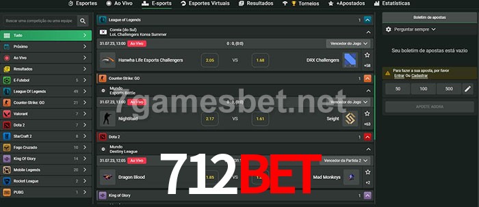 O 712bet oferece uma grande seleção de opções de apostas em e-sports com probabilidades competitivas